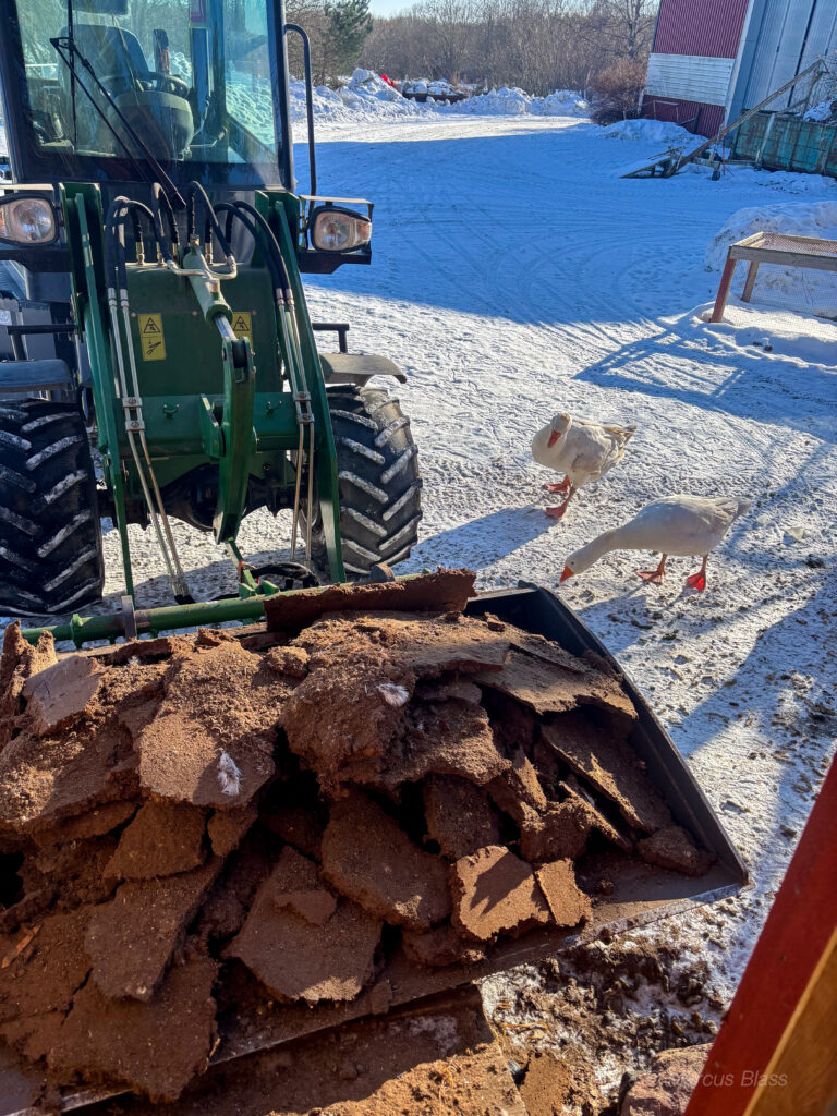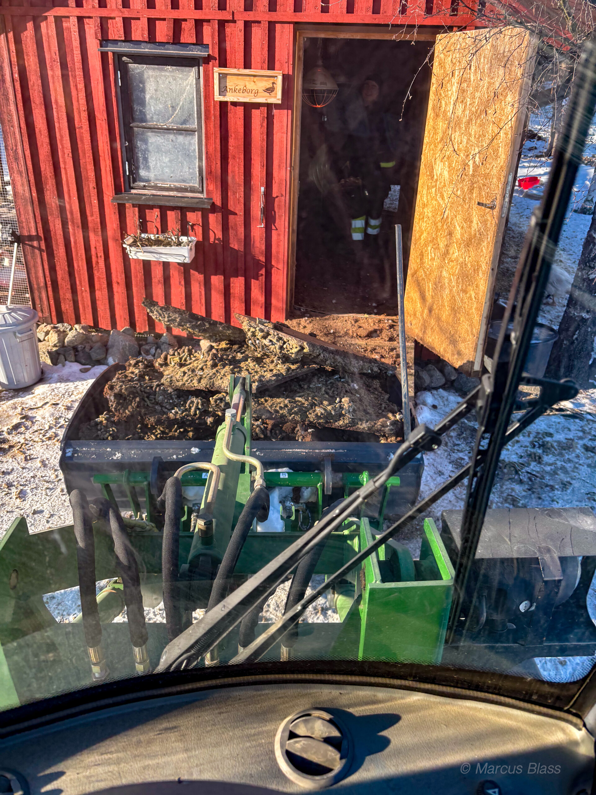 Igår fick jag en försiktig fråga om jag kunde tänka mig att göra det lite enklare att vända Tuk-Tuken och fyrhjulingen uppe vid det övre växthuset. Jag plockade bort en liten tall och schaktade bort en kulle för att göra platsen mer fordonsvänlig. Sågis, Grävis, Lastman och Packman höll mig sällskap under arbetets gång. – Jag styrde och de utförde. För tio år sedan hade jag stått i några dagar för att utföra samma sak som gick på drygt två timmar. Samtidigt som maskiner många gånger underlättar ett arbete så skapar de känslan av att ingenting är omöjligt och med det så blir idéer mer eller mindre till måsten.