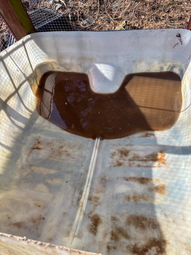 Uppe med tuppen blandade jag ihop två surdegar. Den ena ska jag ha till mitt frö- och nötbröd, och den andra till vanlig “konsumtionslimpa”. När degen var klar och disken urplockad ur diskmaskinen gick jag ut för att justera brunnslocket till hålet där den andra pumpen ska vara. Jag råkade ploga lite vårdslöst i vintras och hakade i brunnslocket som flyttade sig en halv decimeter samtidigt som jag flög fram över ratten när det tog tvärstopp. Eftersom det är asfaltkross som ligger som vägmaterial var jag tvungen att plocka fram Grävis som motvilligt vaknade ur sin vinterdvala. Efter lite grävande runt om brunnen kunde jag flytta locket på plats och släta till ytan runt om.