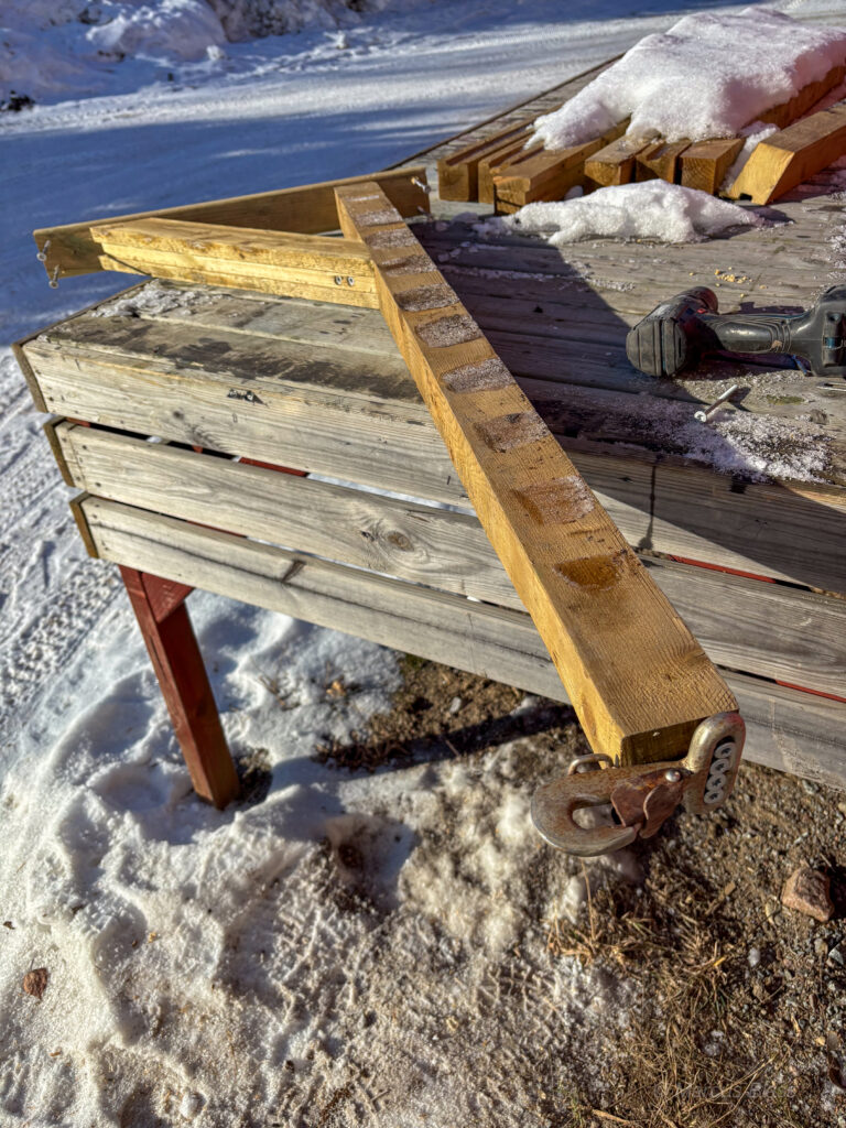 Idag har det varit strålande sol. Det hade varit perfekt om det inte hade varit så att jag först behövde fixa lastmaskinen innan jag satte igång med plogningen. Efter att ha hissat lastmaskinen upp och ner och försökt lirka in sprinten så lyckades jag till slut få den på plats. Jag var beredd på att behöva använda våld för att slå in den, men alla tre hål stod i exakt rätt läge för att med handkraft kunna trycka in den. Därefter fick jag kapa en bult i rätt längd och skruva in den med en låsbricka mellan bulten och sprinten. Nu sitter den åtdragen med bultpistol, så det borde hålla. Efter att ha tryckt in nytt fett i sprinten kunde jag börja ploga.