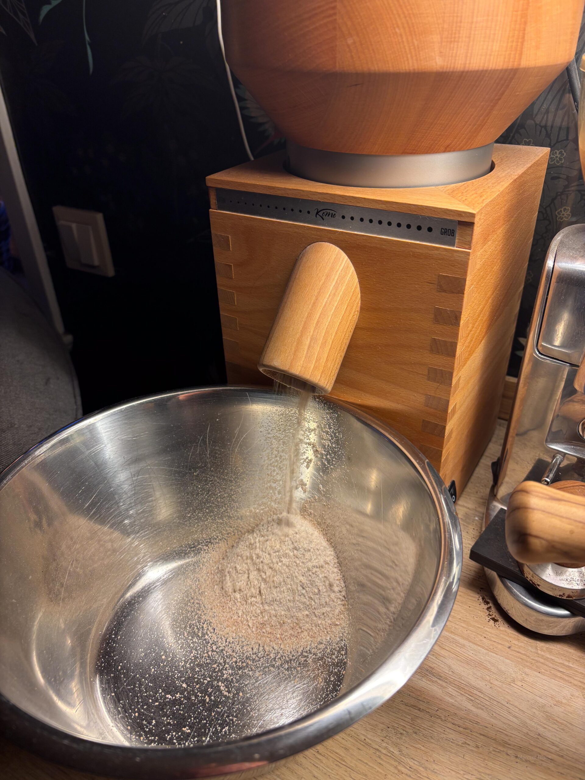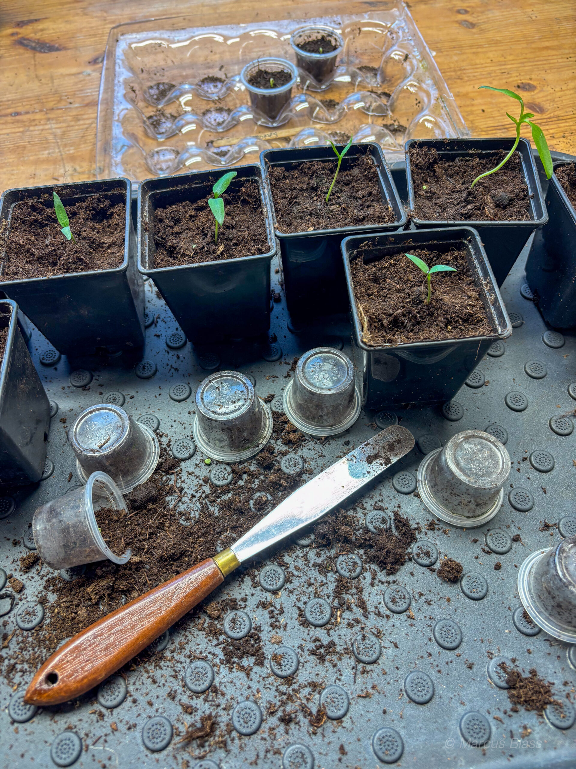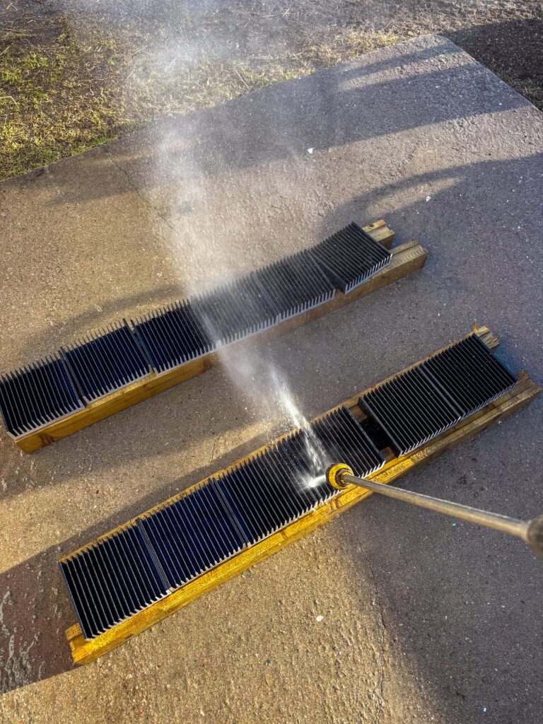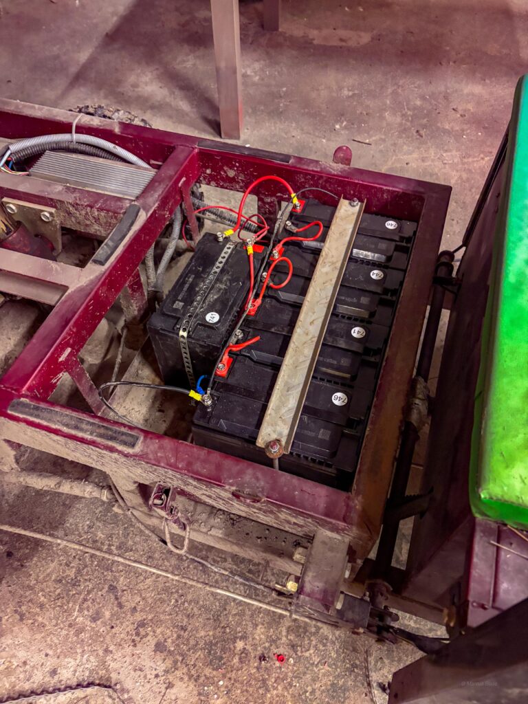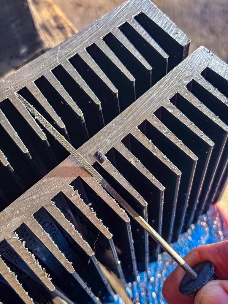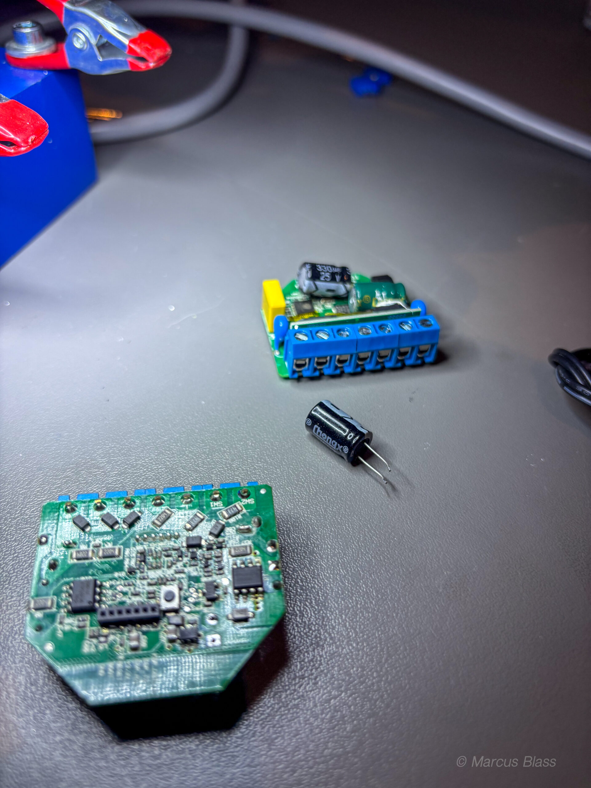 Efter allt arbete uppe vid banan tog jag tag i den mobila hönsgården. Jag svetsade fast vinkeljärn för att kunna fästa hjulen stadigare i ramen. Med hammarlack blir det säkert bra. När jag ändå hade svetsen framme tillverkade jag en liten hållare av en gammal mutter och ett fyrkantjärn för mässingsull som jag håller lödspetsen ren och fin med. HQ fick också ett litet lyft med LED-belysning under hyllorna. Vi får se om jag målar mässingsullshållaren imorgon eller om den får vara som den är.