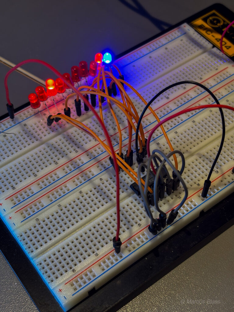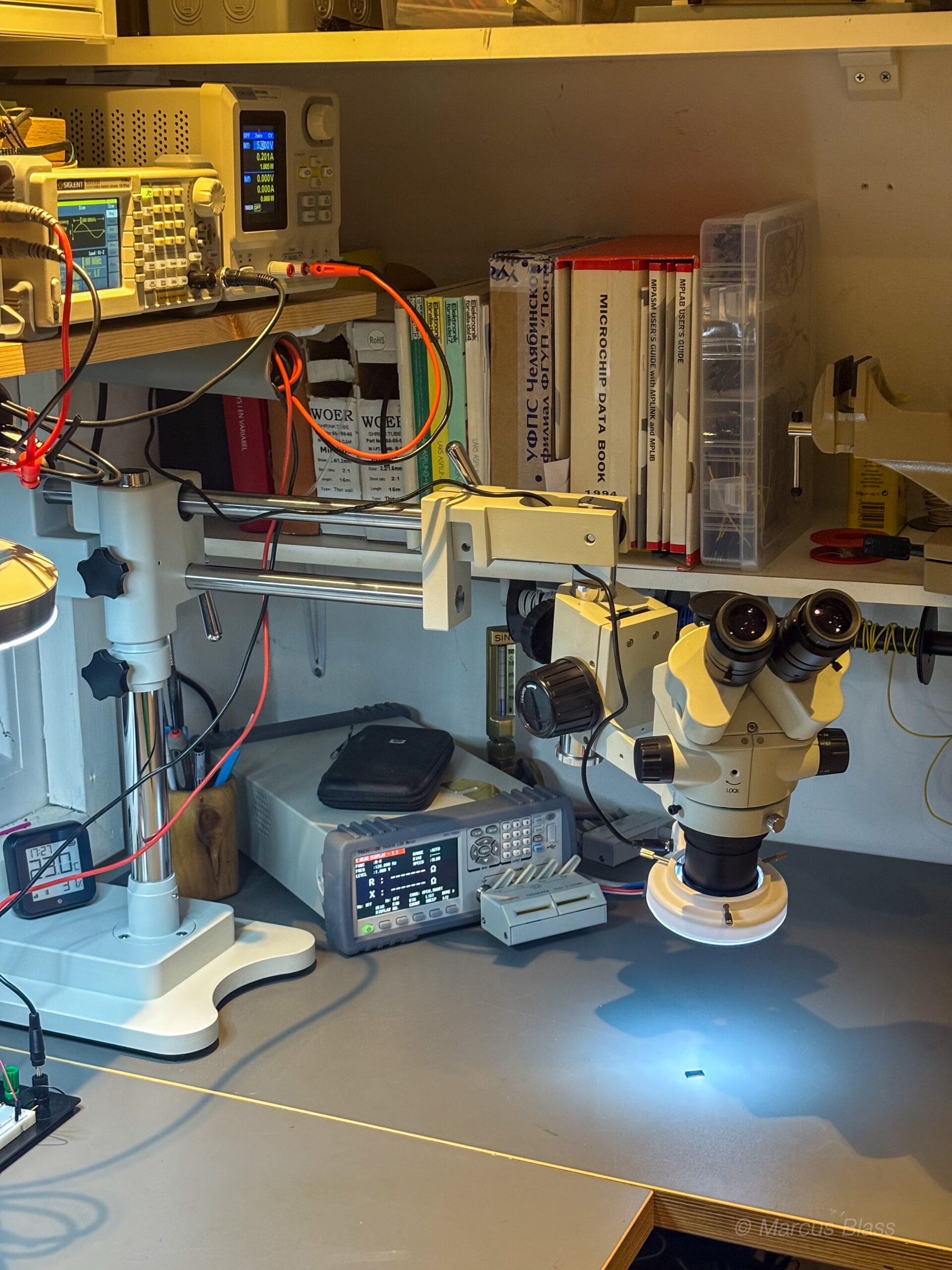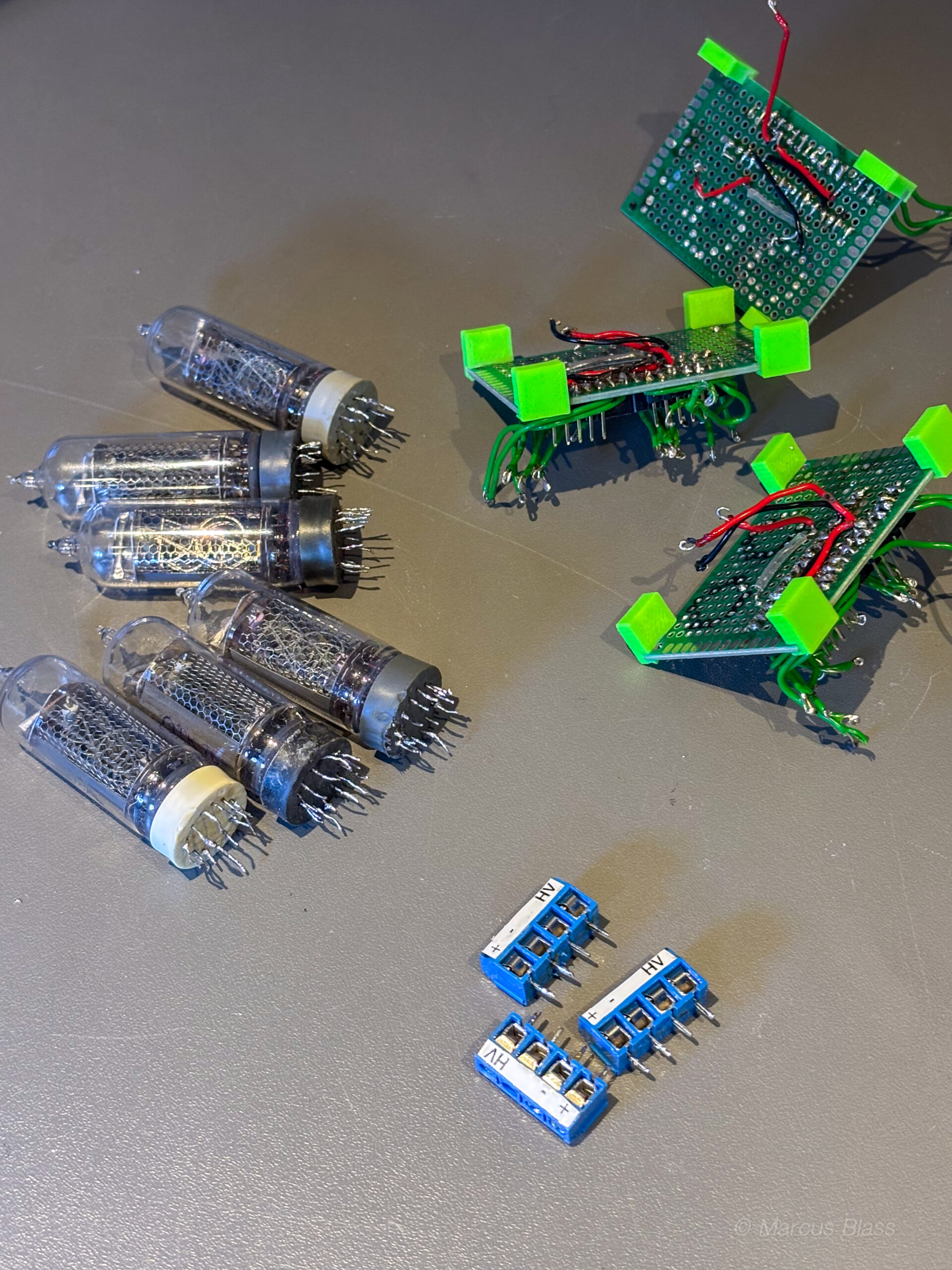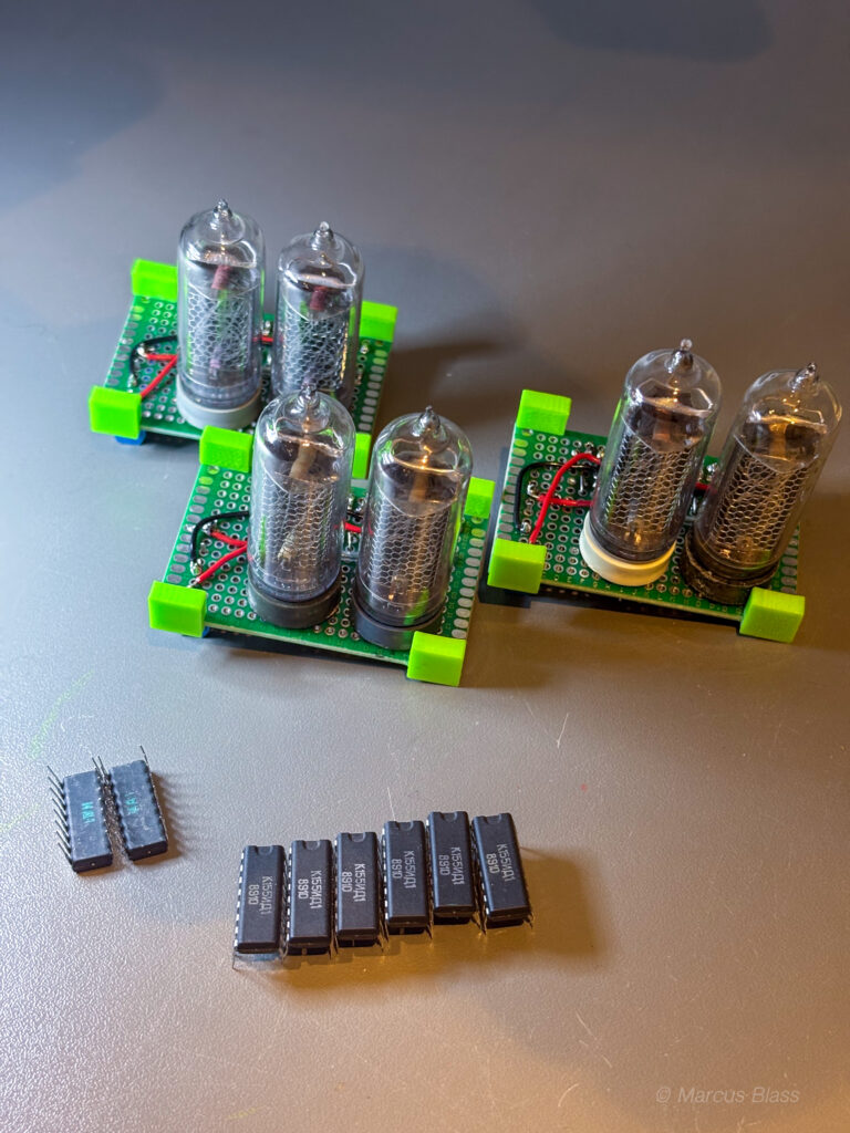 I HQ har jag fortsatt med att steg för steg utveckla Kronos och alla funktioner som behövs för att det ska fungera i slutänden. Idag har jag koncentrerat mig på IC2 som är ett sätt att med två signalkablar kunna skicka information till exempelvis en krets som omvandlar signalen till en parallell signal. Eftersom jag har 6 stycken siffror för att visa tiden, och varje siffra behöver 10 olika signaler skulle utgångarna på microdatorn ganska snart ta slut. Nu klarar jag mig med att använda endast två utgångar istället för 60. Jag fick tillfälle att testa oscilloskopets förmåga att tolka signalerna. Just den här gången testade jag bara funktionen för att lära mig att använda den för framtida felsökning. Jag skrev ett litet testprogram som skickar ut siffrorna 0 till 9 med en halv sekunds intervall. Nästa steg i projektet blir att bygga en krets som skalar upp 5 till 170 volt för att kunna driva nixierören.